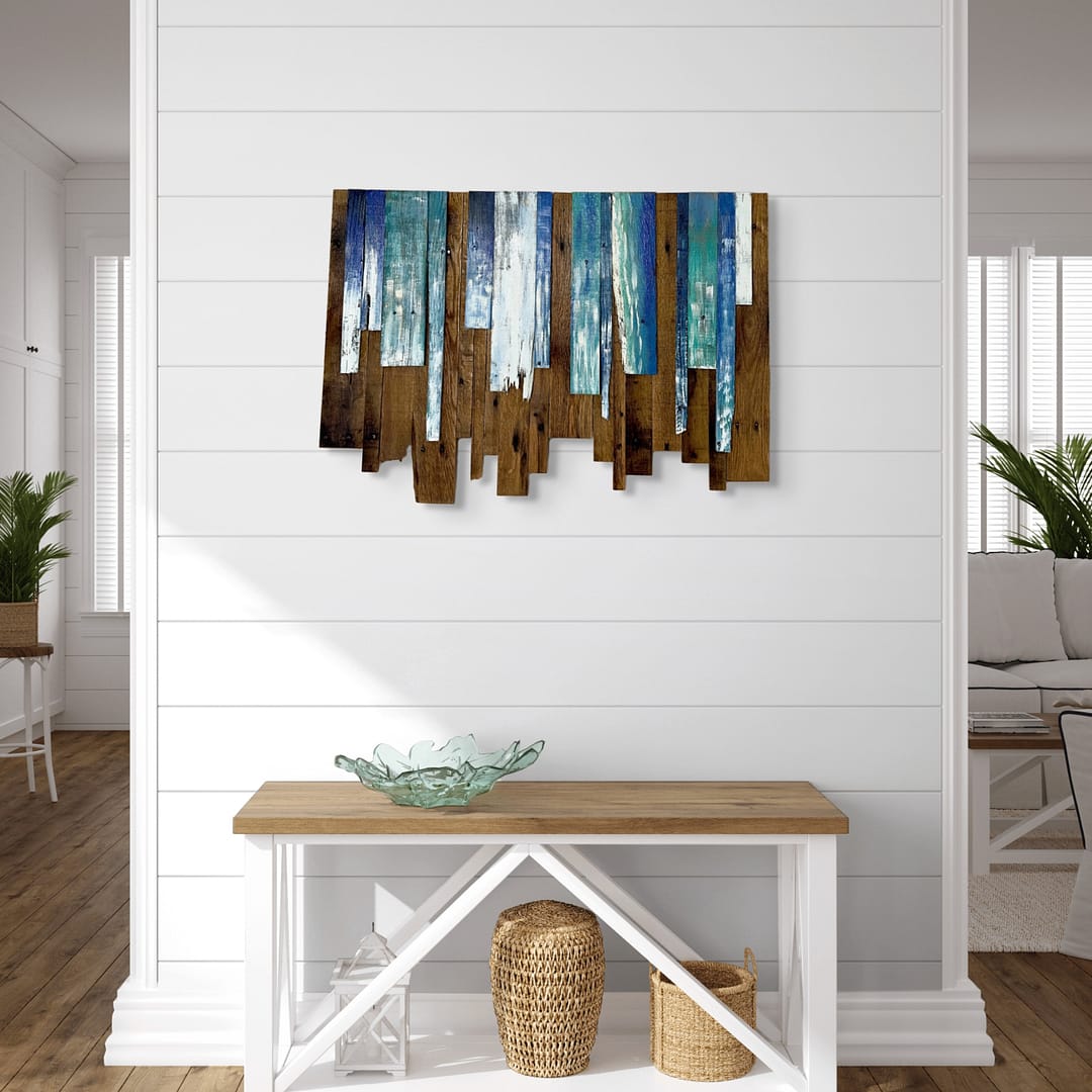 Ocean Mist Mosaic layers soft blues and seafoam greens to capture calm, coastal air and gentle waves. It’s meant to bring that beach‑house breeze into everyday spaces.