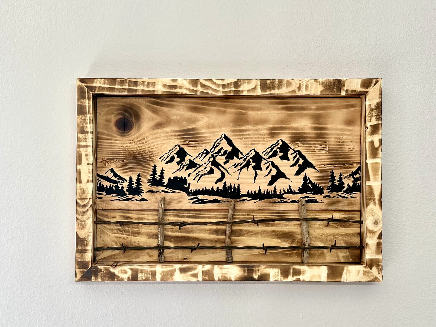 Frontier Springline Mountain Fence combines mountain silhouettes with the steady rhythm of a fence line. We wanted it to feel like early thaw in the high country—snow fading, greenery just starting to return.