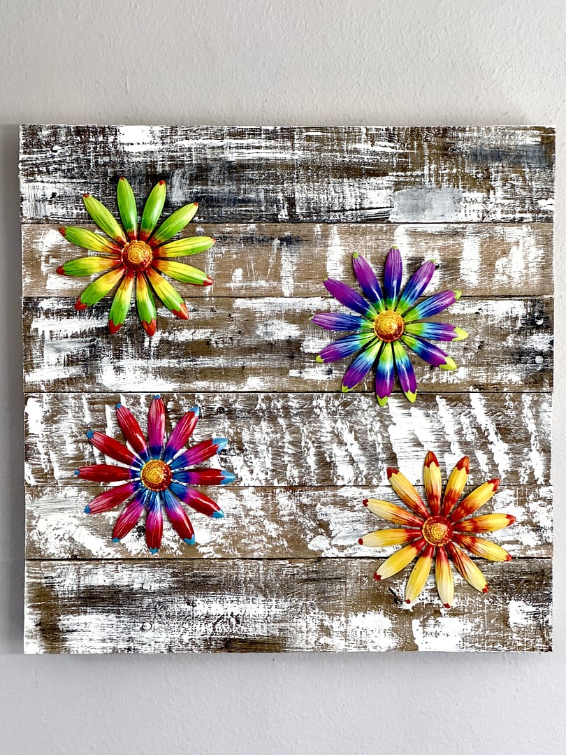 See our Spring Metal Flower Wall Art on wood in our shop→